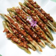 扁豆、猪肉馅、葱、姜、蒜、料酒、生抽、老抽、甜面酱、大料、香油、盐、糖、淀粉。