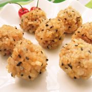 剩米饭、椒盐、料酒、黑芝麻、香葱、淀粉。