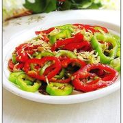 红椒、绿椒、烤虾皮、味极鲜、芝麻油。
