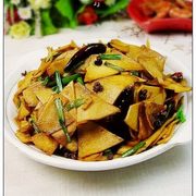 薄豆皮、花椒、干红椒、韭苔、酱油、高汤精。
