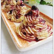 熟土豆、炼乳、蓝莓果酱、自制酸奶。