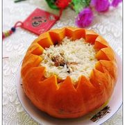 排骨、南瓜、糯米、葱、姜、盐、料酒、糖、酱油。