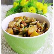 土豆、芸豆、五花肉、葱、姜、蒜、香菜、八角、酱油、盐。