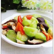 香菇、丝瓜、红椒、蒜、盐、鸡精。