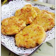 熟小土豆、面粉、葱、火腿肠、盐、番茄沙司。
