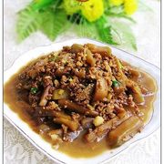 茄子、肉末、葱、姜、蒜、盐、醋、糖、酱油、料油。