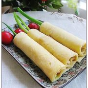 五香豆干、葱、干红椒、香菜、芝麻油、味极鲜。