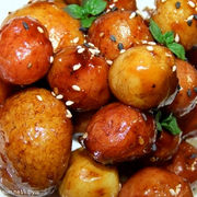 小土豆、盐、酱油、白糖、料酒、糖稀、花椒、蒜泥、煮海带水、香油、芝麻。