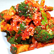 西兰花、粗盐、水、青椒、洋葱、胡萝卜、黄瓜、辣椒粉、鱼露、蒜泥、白糖、香油、姜汁、芝麻。