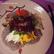 粉条、鸡蛋、胡萝卜、洋葱、蘑菇、生菜、芝麻、蒜泥、韩式辣椒酱、生抽、糖稀、白糖。