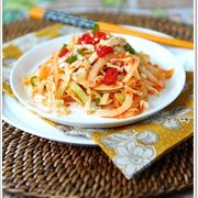 萝卜、洋葱、蒜泥、大葱、辣椒粉、白糖、芝麻、盐、白醋、香油。