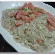 香肠、金针菇、蒜、盐、玉米淀粉。