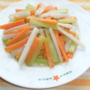 猪肉、大头菜、青椒、红椒、酱油、料酒、花生油、盐、鸡精。