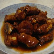 小肋排、冰糖、盐、葱、蒜、姜、老抽、料酒、香叶、八角、桂皮、肉蔻。