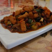 鸡胸肉、姜、蒜、黄瓜、胡萝卜、花生米、干红椒、葱、油、盐、糖、醋、酱油、淀粉。