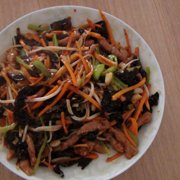 猪肉、木耳、椒、豆芽、胡萝卜、葱、姜、蒜、郫县豆瓣酱、糖、盐、胡椒粉、料酒、酱油、水淀粉。