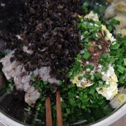 韭菜、鸡蛋、面粉、虾仁、木耳。