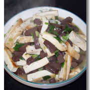 猪红、北豆腐、蒜叶、姜丝、盐。