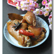猪蹄、大料、冰糖、草果、香叶、桂皮、山楂、干红椒、老抽、盐。