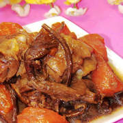 茶树菇、鸭腿、胡萝卜、老抽、盐、生姜、大料、花椒。