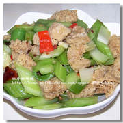 烤麸、青红椒、姜蒜、西芹、干红椒、花椒。