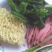 面、火腿、菠菜、食用油、水、盐、味精、醋、香油、芝麻酱。