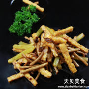 天贝、茶树菇、莴笋、油、盐、老抽。