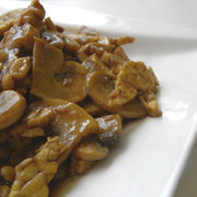 天贝、口蘑、葱、料酒、酱油、盐、糖、胡椒粉、水淀粉、香油。