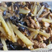 土豆、木耳、鸡蛋、瘦肉、酱油、生姜、盐。