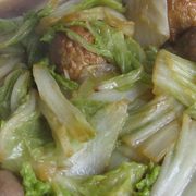 大白菜、牛肉丸、甜不辣丸、酱油、盐。