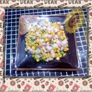 龙利鱼柳、甜玉米罐头、甜青豆、香肠、盐、鸡精、糖、黑胡椒粉、料酒、淀粉。