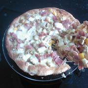 高筋面粉、牛奶、鸡蛋、油、黄油、酵母、洋葱、黄甜椒、培根、牛肉粒、马苏里拉芝士、糖、番茄沙司。