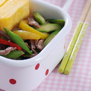 芦笋、牛里脊、红椒黄椒、葱、姜、油、生抽、黑胡椒粉、淀粉、盐。