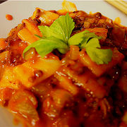 羊肉、洋葱、绿甘蓝、黄油、干辣椒、花椒、盐、糖、醋、酱油、料酒、黑胡椒。