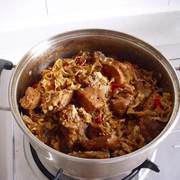 猪排骨、干竹笋衣、大蒜、大葱、生姜、干辣椒、酱油、黄酒、花椒、鸡精、盐、生抽。