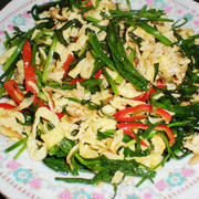 腐竹、海蜇、红萝卜、青椒、盐、辣椒油、鸡精、香油、白芝麻。