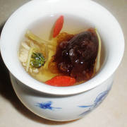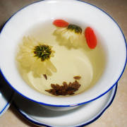 胖大海、金银花、贡菊、枸杞、冰糖。