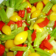 白果、芹菜、红椒、盐、鸡精、鸡精。