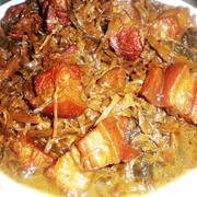梅干菜、五花肉、生姜片、酱油、玉米油、米酒、盐。