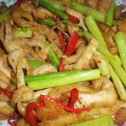 油豆腐、芹菜、红椒、玉米油、盐、鸡精。