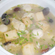 鱼丸、蛋饺、鱼豆腐、香菇、木耳、葱花、盐、鸡精。