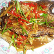 黄花鱼、生姜、香葱、红椒、盐、玉米油、米酒、酱油。