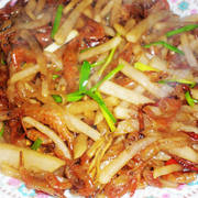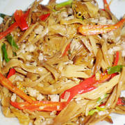 干黄花、瘦肉、红椒、香葱、盐、玉米油、鸡精。