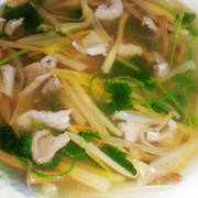 黄花、芹菜叶、瘦肉、淀粉、盐、鸡精、食用油。