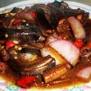 洋葱、鳝鱼、生姜、小米椒、料酒、盐、玉米油、酱油、啤酒。