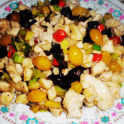 白果、鸡脯肉、木耳、生姜、蒜瓣、小米椒、大葱、料酒、淀粉、蛋清、盐、玉米油、鸡精、生抽。