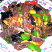 鸭胗、泡椒、青红椒、小米椒、木耳、淀粉、料酒、盐、玉米油、生抽、生姜、蛋清、鸡精。