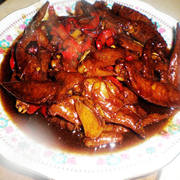 鸡翅尖、生姜、蒜瓣、小米椒、红椒、料酒、花椒、八角、桂皮、酱油、鸡精、玉米油。