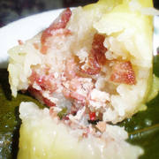 糯米、培根、食用碱、粽叶、盐、玉米油。