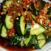 黄瓜、蒜瓣、盐、醋、糖、香葱、小米椒、麻油、鸡精。